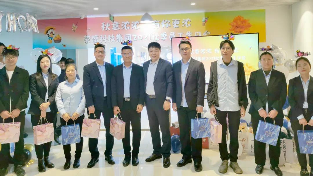 秋風(fēng)簌簌,揮毫潑墨遍將層林盡染;寒霜凝凝,靜默不語(yǔ)悄為初冬作序。為增加企業(yè)團(tuán)隊(duì)凝聚力,豐富員工精神文化生活,11月6日下午,榮盛科技集團(tuán)隆重舉辦了「秋意濃濃,有你更濃——2021秋季員工生日會(huì)」,集團(tuán)董事長(zhǎng)楚科奇、總經(jīng)理王海軍、技術(shù)副總經(jīng)理崔戰(zhàn)濤、董事長(zhǎng)助理張阿麗、外貿(mào)總監(jiān)張運(yùn)河等集團(tuán)領(lǐng)導(dǎo)與來(lái)自各個(gè)部門的60余名壽星齊聚一起,共慶生日,共享快樂(lè)時(shí)刻。